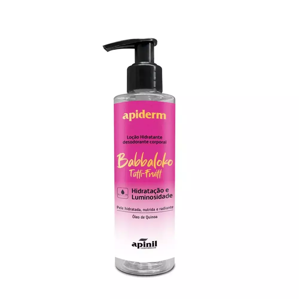 Loção Babbaloko Tutti-Fruitt tem em sua formulação Óleo de Quinoa que auxilia na hidratação profunda da pele deixando-a mais firme, iluminada, nutrida e radiante. Cheirinho de Chiclete!