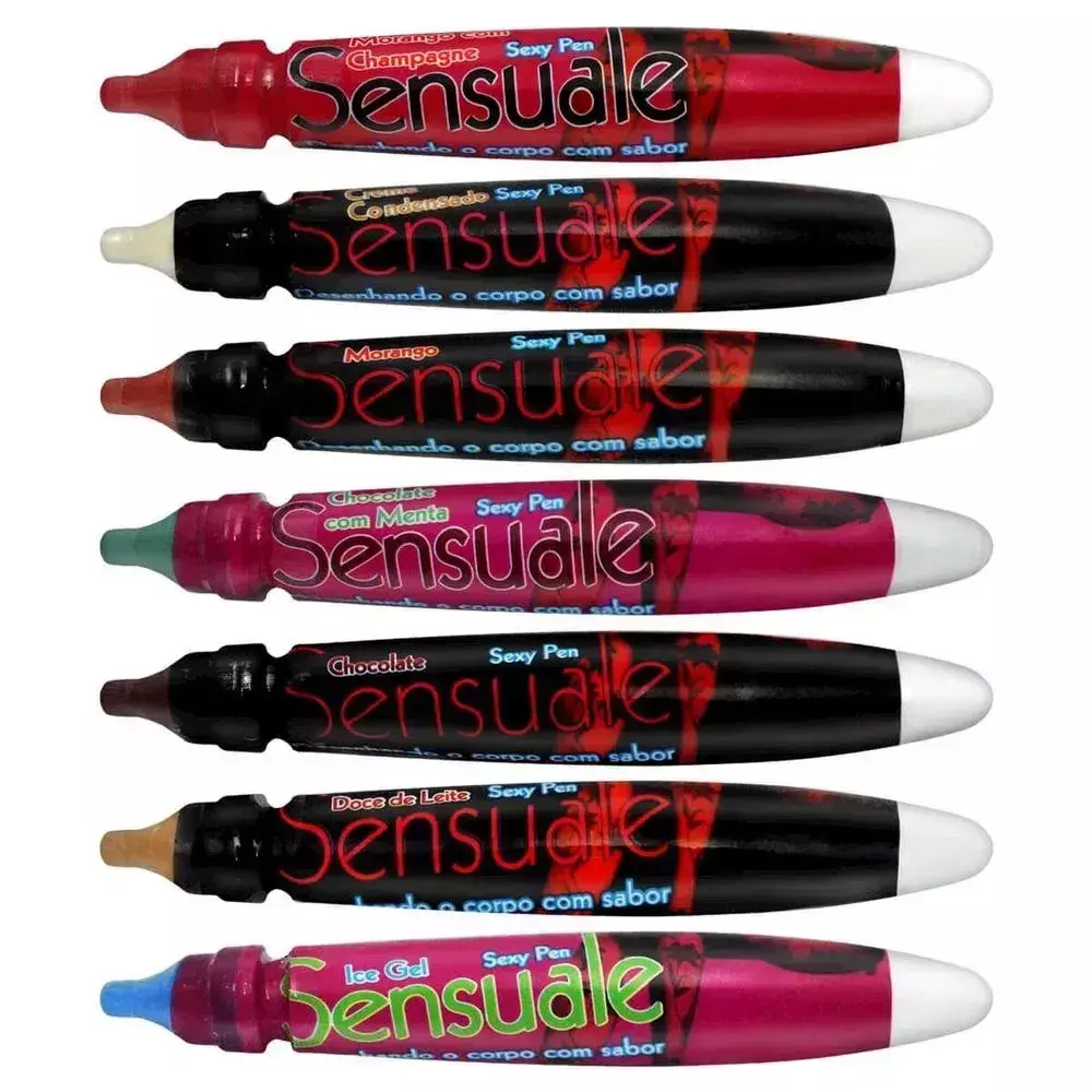A Sexy Pen Sensuale é uma caneta em gel comestível que tem como função estimular os sentidos como o tato e paladar, foi desenvolvido para ser utilizado em todo corpo tornando a relação mais saborosa e divertida. Pode ser usada para escrever no corpo, fazer sexo oral, etc. Abuse da imaginação.