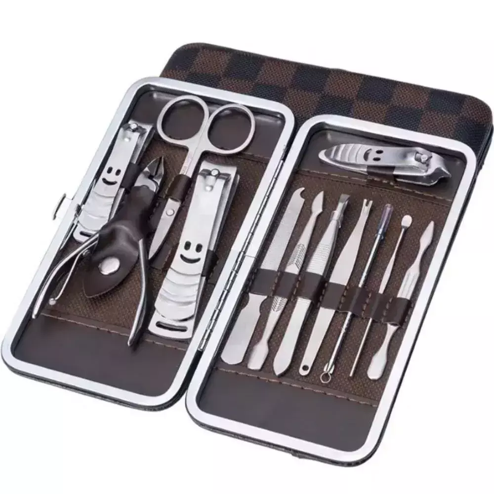 KIT Manicure, kit de pedicure, cortador de unhas, kit de cuidados profissionais, ferramentas de unha com estojo de viagem luxuoso, conjunto de 12 unidades. (cortadores de unhas 12 peças)
