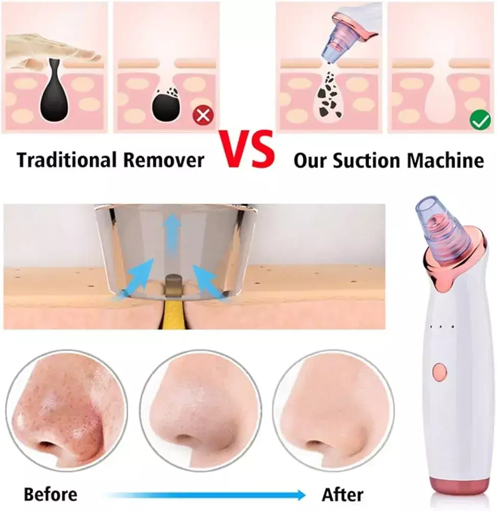 - Tecnologia de Sucção a Vácuo: Este aparelho utiliza sucção para extrair suavemente cravos, espinhas e impurezas da pele, sem causar danos.