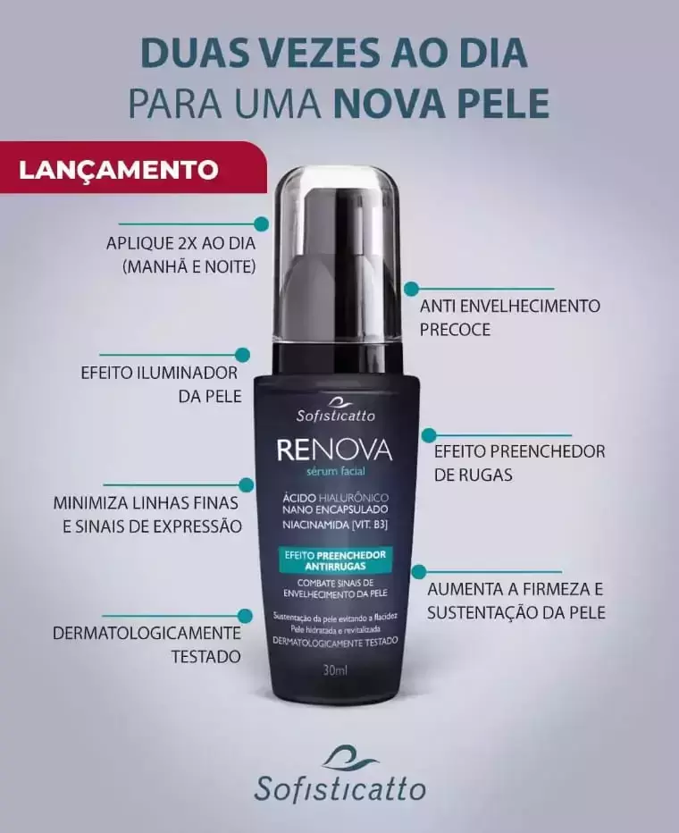 Embalagem: 1 - Renova Sérum Facial Preenchedor Antirrugas com Ácido Hialurônico 30mL