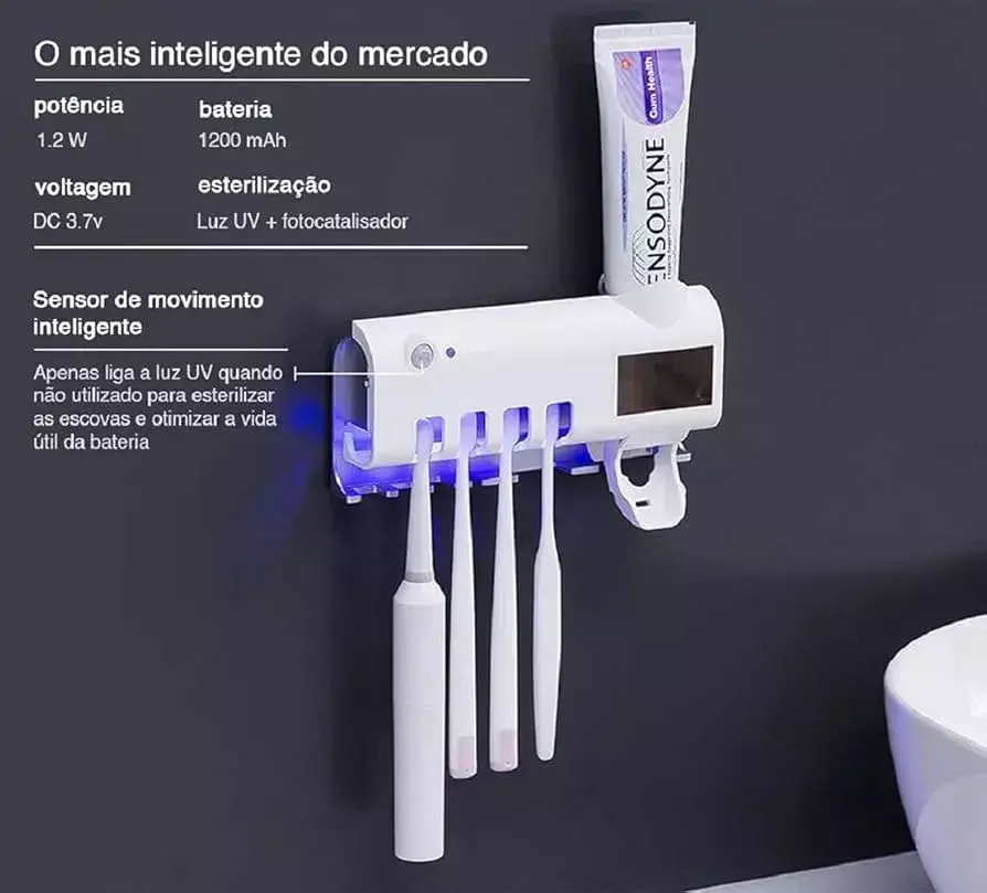 *Suporte Para Escova De Dentes Esterilizador Com Luz UV*