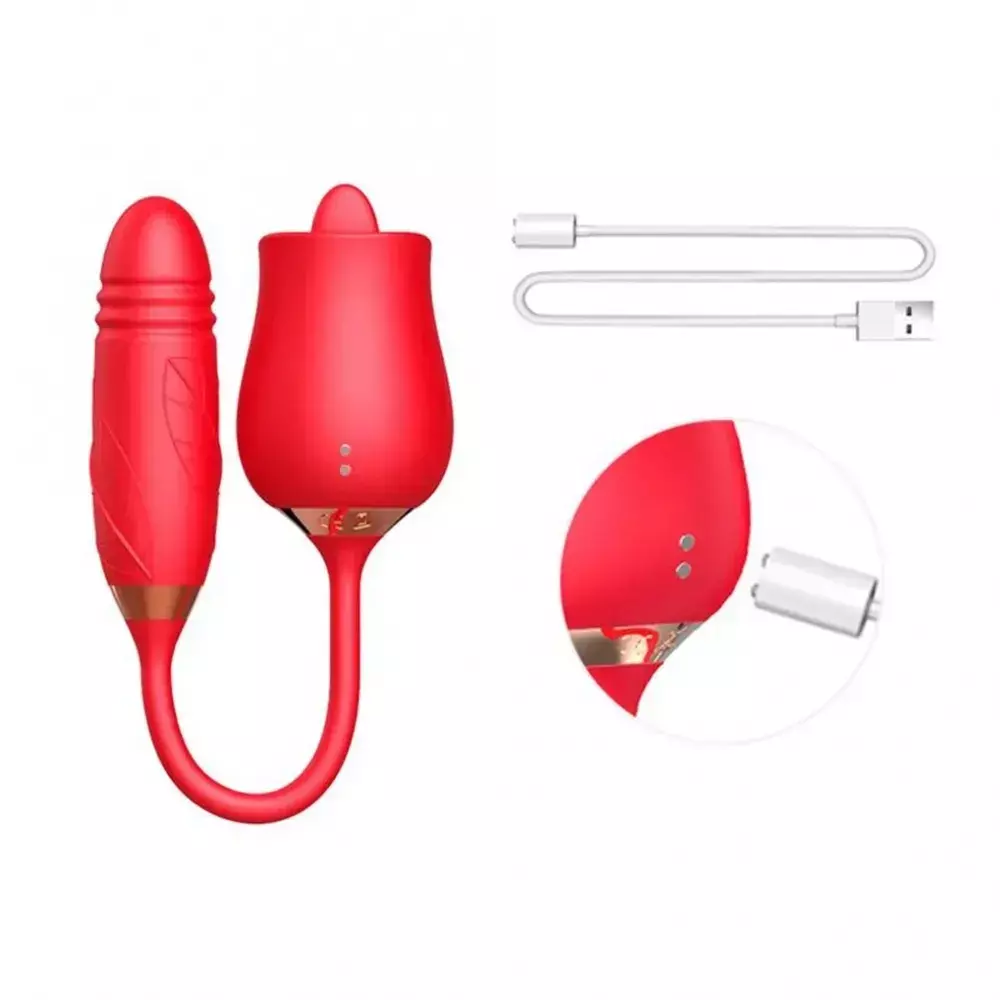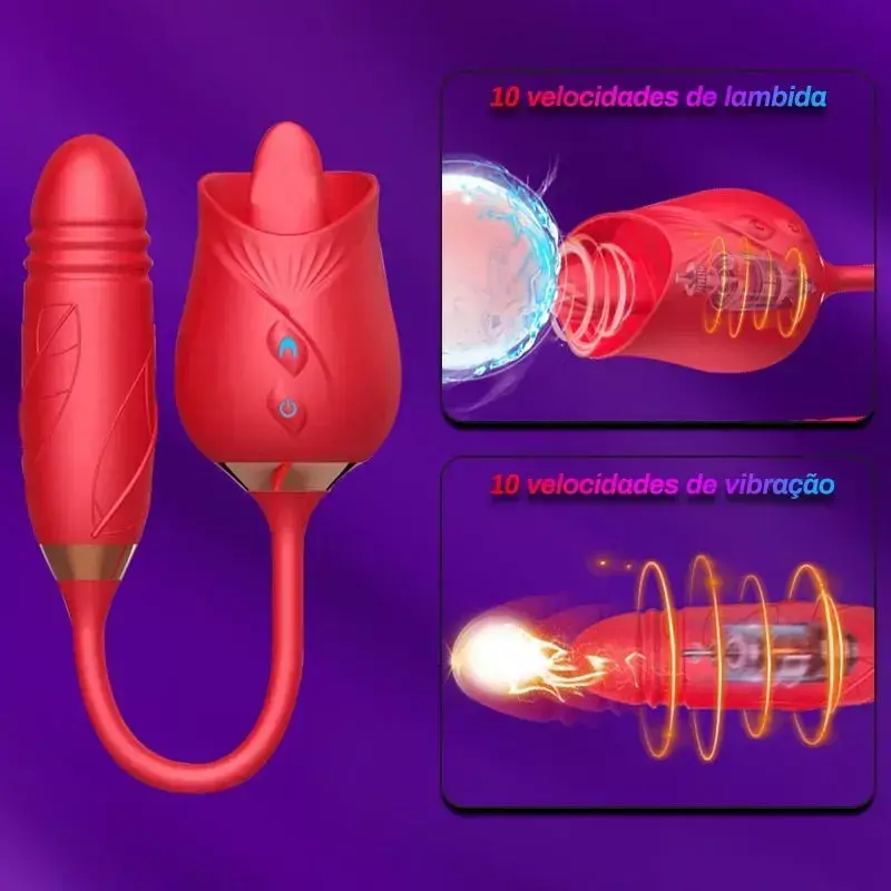 ROSA VIBRADOR RECARREGAVEL E ESTIMULADOR ORAL E MOVIMENTOS VAI E VEM