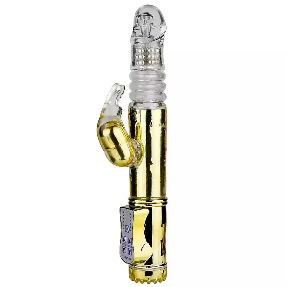 Tem a ponta com uma curva para a estimulação do ponto G, também possui um plug em sua lateral em formato de Coelho, para estimular